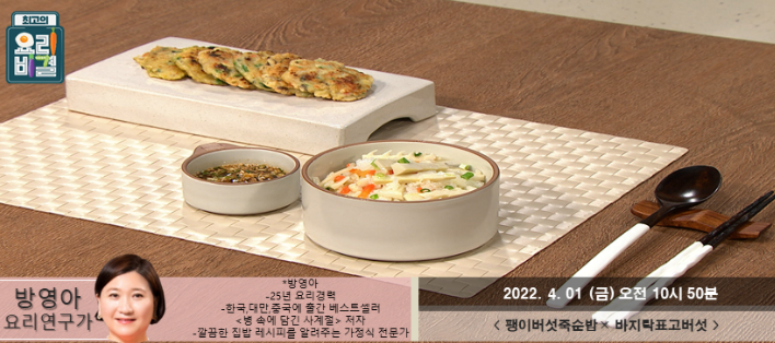 최고의 요리비결 방영아의 팽이버섯죽순밥과 바지락표고버섯전 레시피