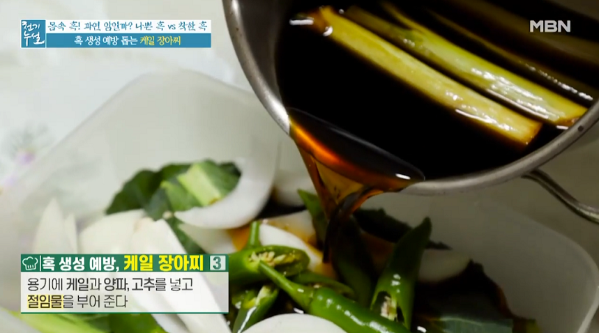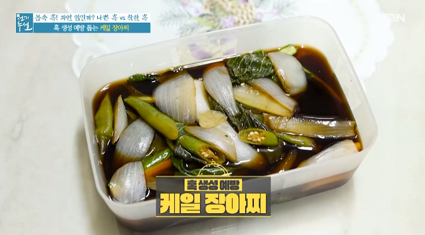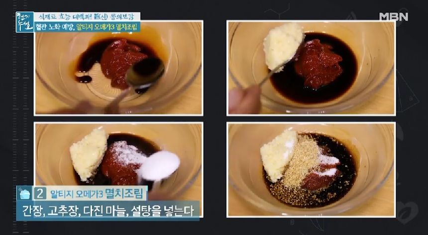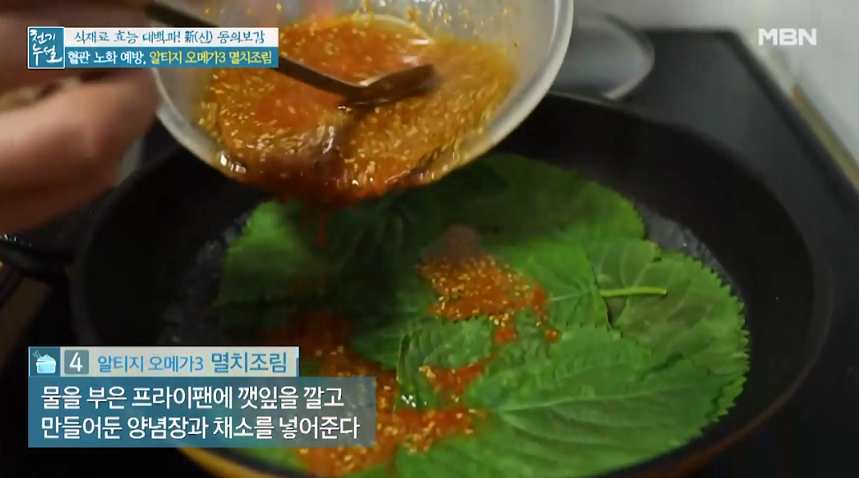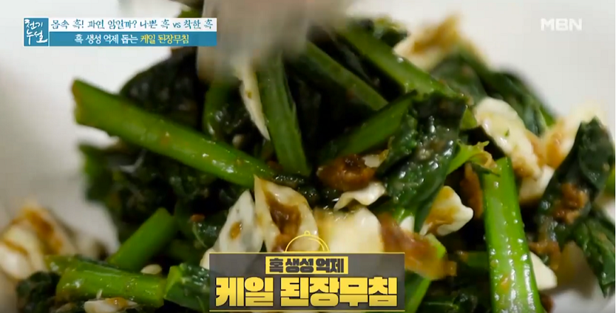 천기누설 케일된장무침 케일장아찌 알티지 오메가 3 멸치조림 레시피