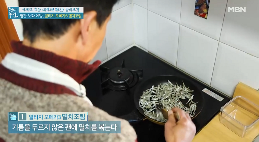 1. 기름을 두르지 않은 팬에 멸치를 볶는다.