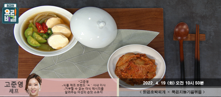 최고의 요리비결 고준영의 맑은호박찌개와 묵은지들기름볶음 레시피