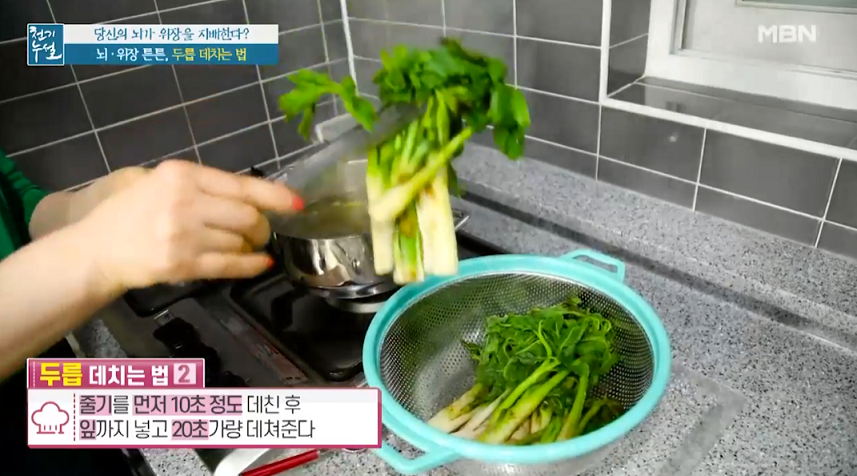 4. 잎까지 넣고 20초 가량 더 데쳐준다.