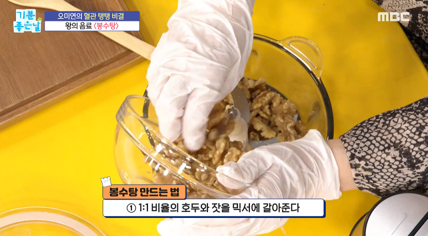 1. 1:1 비율의 호두와 잣을 믹서에 갈아준다.