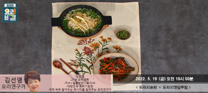 최고의 요리비결 김선영의 도라지솥밥과 도라지깻잎무침 레시피
