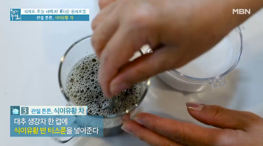 3. 대추 생강차 한 컵에 식이유황 반 티스푼을 넣어준다.