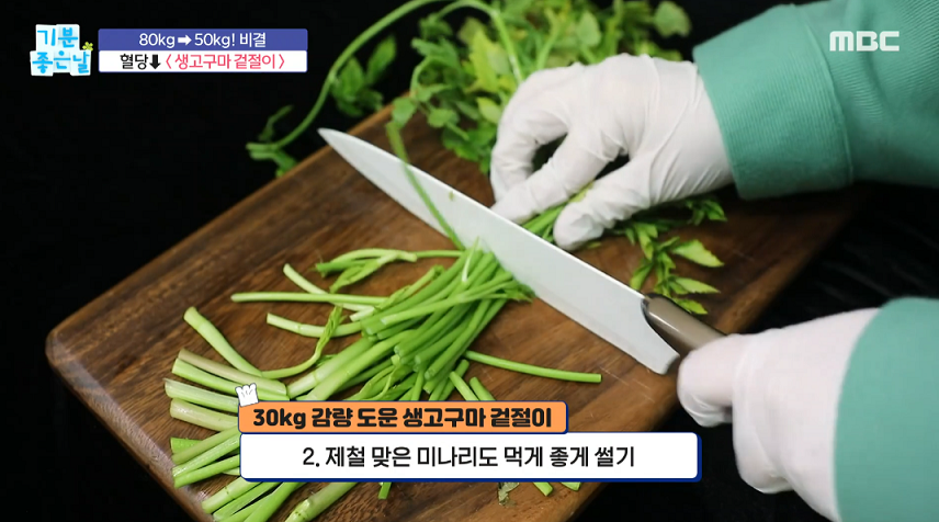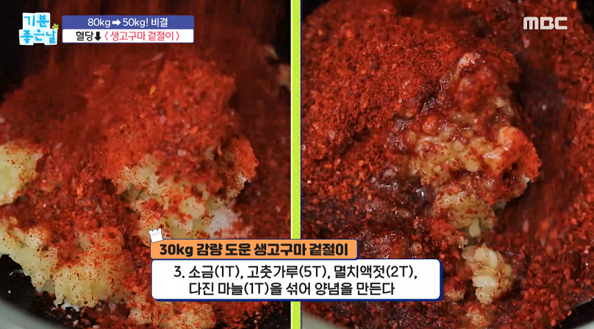 기분좋은날 생고구마 겉절이 뱃살 나'빵' 레시피 쿠션 운동법