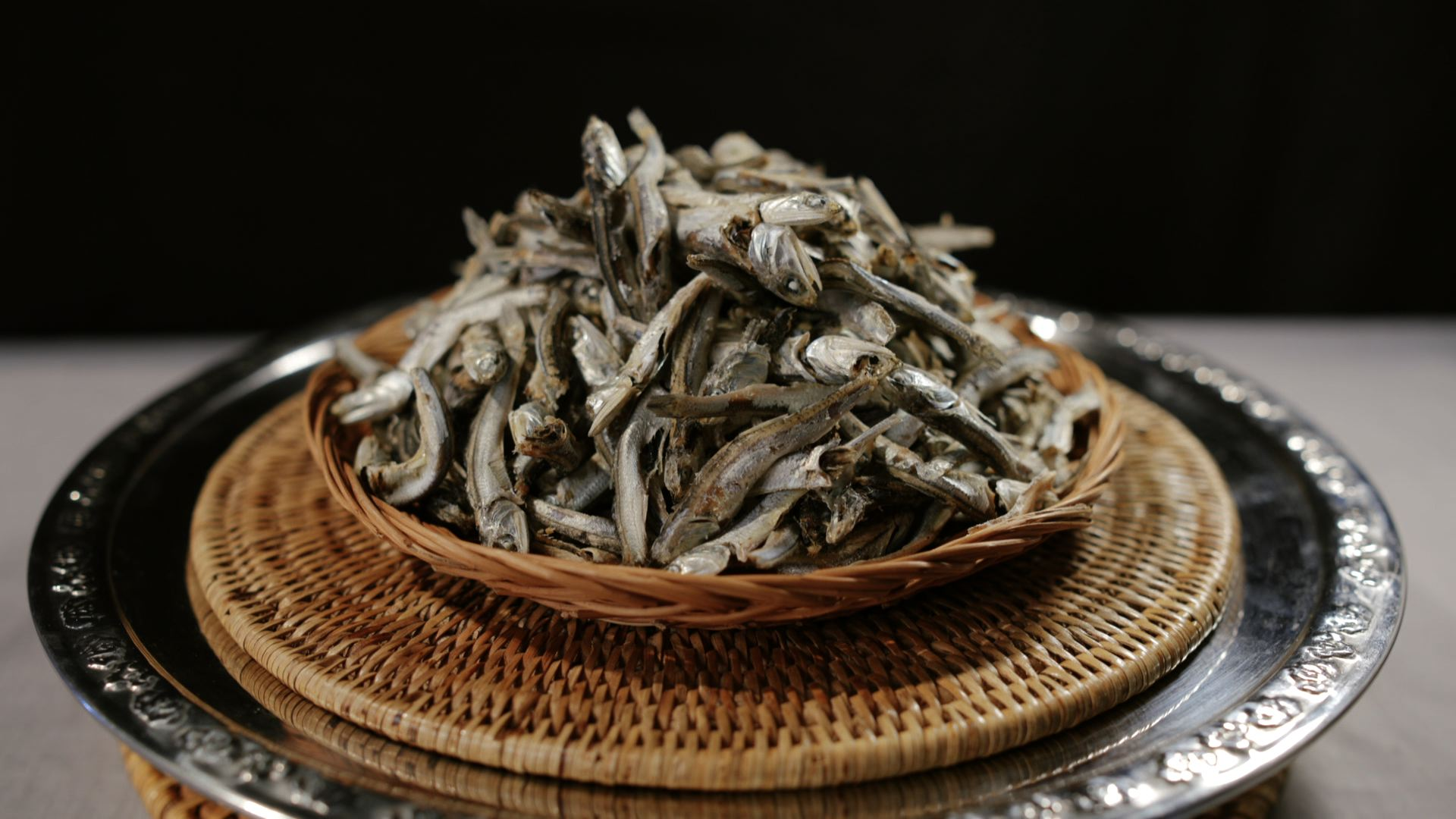 2. 손질된 국물용 멸치와 잣은 프라이팬에 볶아 비린내와 군내를 날린다. (약 30초)