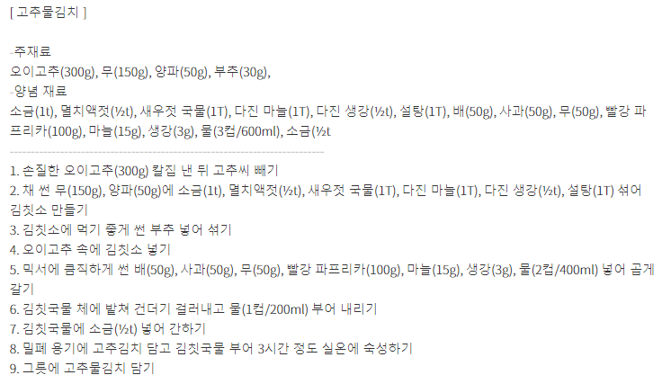 최고의 요리비결 한명숙의 고추물김치와 오이소박이 레시피 만드는 방법