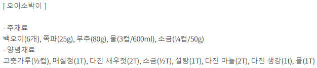 알토란 천상현 오이소박이 권영호 가지갈비 만드는 방법 레시피가 어떻게 되는지 알아보겠습니다. 만드는 방법 1. 백오이를 굵은 소금으로 문지르고 물로 깨끗이 씻는다. 2. 백오이를 6~7cm로