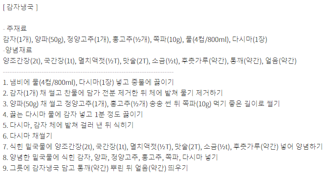 레시피가 어떻게 되는지 알아보겠습니다.