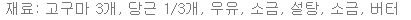 2. 깍둑 썬 고구마와 당근에 우유를 2컵 붓고 설탕 3스푼, 소금 1꼬집, 버터 2큰 술을 넣는다.