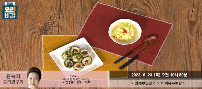 | 최고의 요리비결 윤숙자의 양배추달걀국과 머위유부보쌈 레시피 만드는 방법 (0) | 2022.06.17 |
