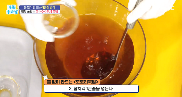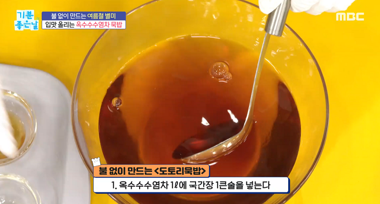 1. 옥수수수염차 1리터에 국간장 1큰술을 넣는다.