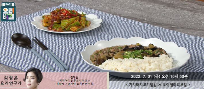 김정은의 가지돼지고기덮밥과 오이샐러리무침 레시피