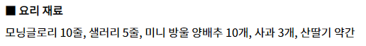 1. 모닝글로리, 샐러리, 미니방울 양배추, 사과를 흐르는 물에 깨끗하게 씻는다.