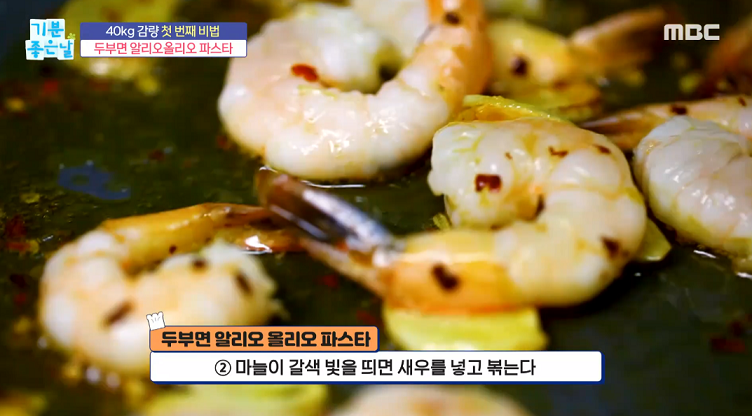 2. 마늘이 갈색 빛을 띄면 새우를 넣어 볶는다.