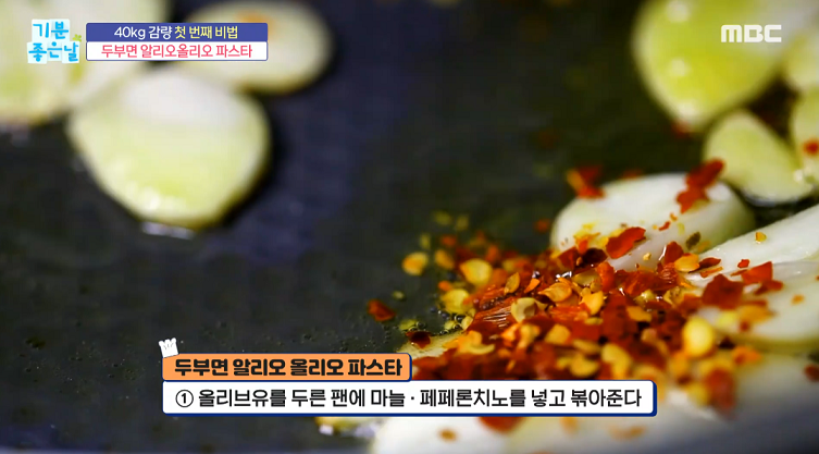 1. 올리브유를 두른 팬에 마늘.페페론치노를 넣고 볶아준다.