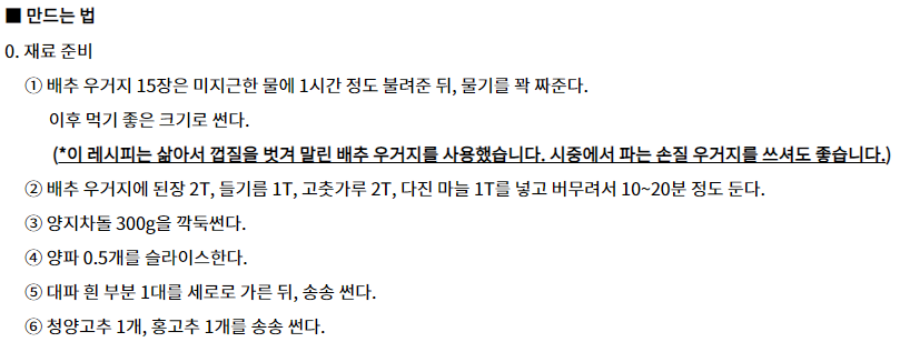 편스토랑 이찬원 우거지 된장 지짐이 편수 만두 레시피