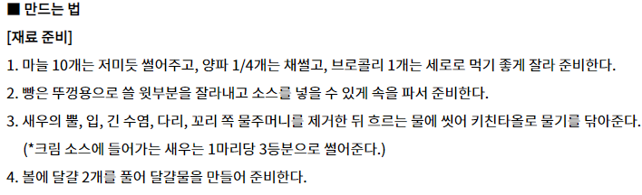 2. 마늘이 노릇해지면 썰어둔 양파, 브로콜리를 넣고 볶다가 재료들이 기름을 먹으면 새우와 생크림 400ml, 우유 200lml, 체다치즈 2장, 소금과 후추를 살짝 뿌려 간한다.