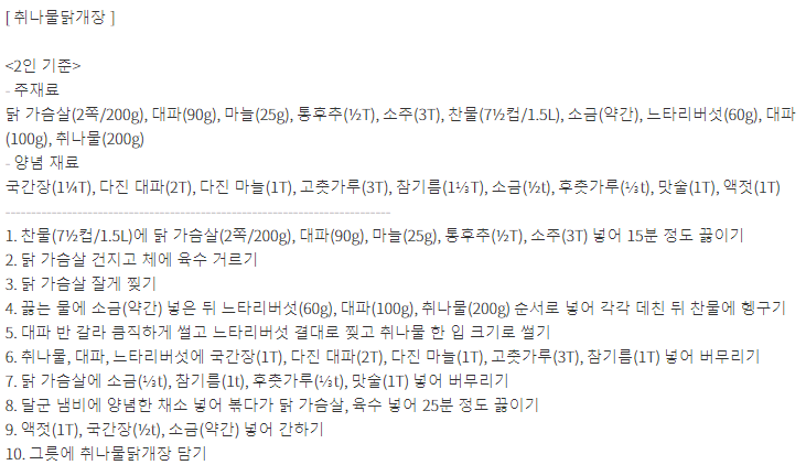최고의 요리비결 임미자의 취나물닭개장과 새송이버섯오이무침 레시피