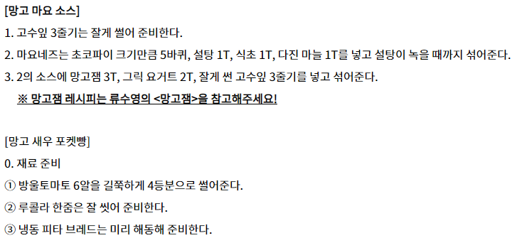편스토랑 류수영 망고 새우 포켓빵 망고 코코넛 요거트 레시피