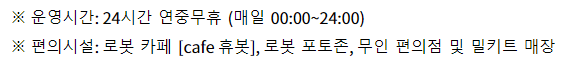 06시 ~ 22시 공휴일 10 ~ 17 일요일 휴무