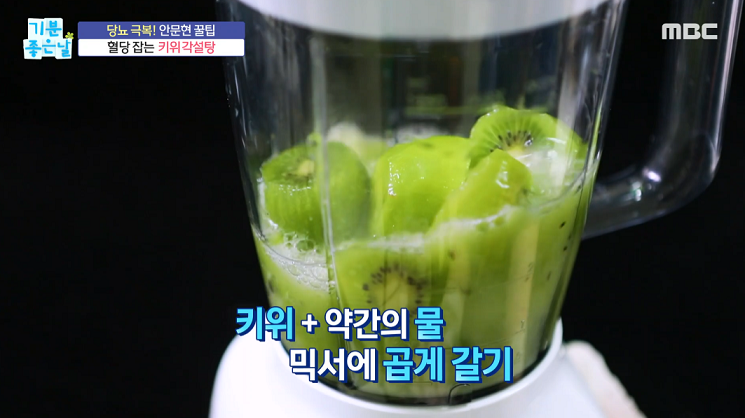 1. 키위의 껍질을 벗기고 믹서기에 곱게 간다.