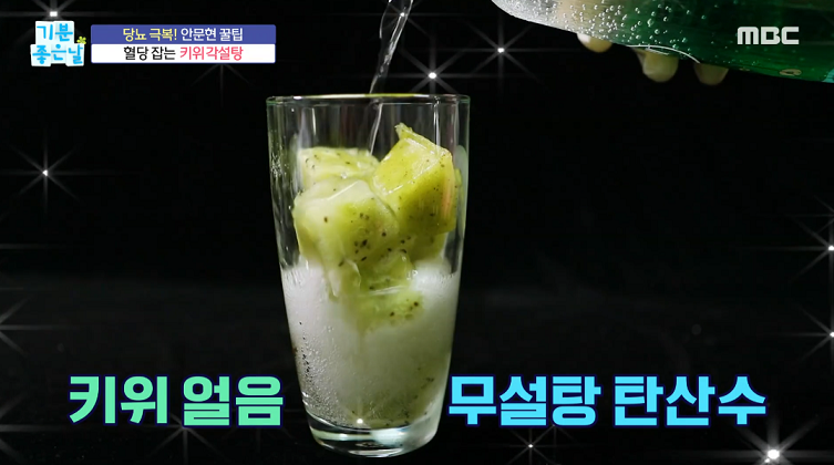 3. 탄산수를 넣고 키위 얼음을 넣으면 키위에이드 완성