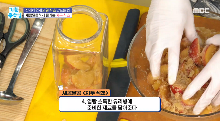 4. 열탕 소독한 유리병에 준비한 재료를 담아준다.