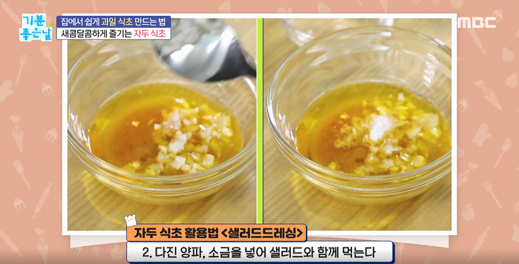 2. 다진양파, 소금을 넣어 샐러드와 함께 먹는다.