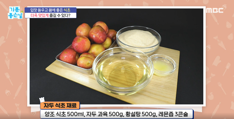 양조식초 500ml, 자두과육 500g, 황설탕 500g, 레몬즙 3큰술