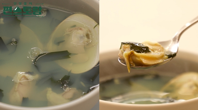 (소금간을 취향껏 조절하면 된다. 백합살을 넣고 데우는 정도로만 가볍게 끓여준다.)