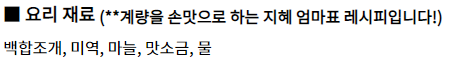 (백합은 따로 해감하지 않아도 된다. 삶은 물은 버리지 않는다.)