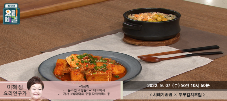 | 최고의 요리비결 이혜정의 불고기가지볶음과 고구마조림 레시피 (0) | 2022.09.04 |