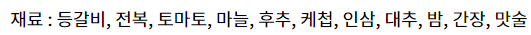 1. 등갈비를 기름을 두른 팬에 노릇하게 구워낸 다음, 토마토, 마늘, 인삼, 대추, 밤과 함께 볶아 낸다.