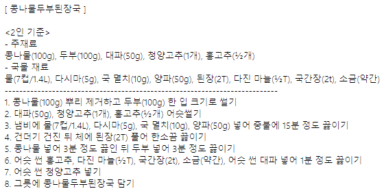 한명숙의 콩나물두부된장국과 버섯콩나물무침