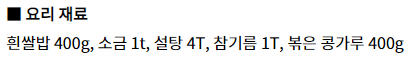 1. 볼에 흰쌀밥 400g, 소금 1t, 설탕 4t, 참기름 1t를 넣고 약 10분간 짓이기듯이 방망이로 치대준다.