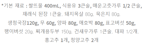 1. 무는 얇게 썰고 돼지고기, 묵은지, 양파, 애호박, 표고버섯, 대파, 고추는 1×1cm크기로 팽이버섯은 4~5cm로 자른다.