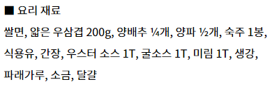 4. 간장 1t, 우스터소스1t, 굴소스1t, 미링1t를 섞어 소스를 만든다.
