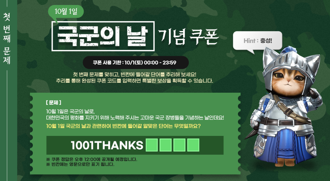 내용들 확인하시고 게임 관심있으신 분들은 쿠폰등록 해보시면 되겠습니다.