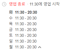 11시 ~ 21시까지 마지막 주문은 20시까지