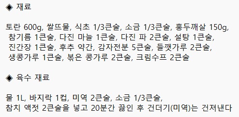 레시피가 어떻게 되는지 알아보겠습니다.