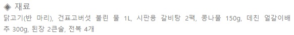 1. 닭고기 반마리에 건표고버섯 불린 물 1리터를 넣고 20분간 끓여 닭 육수를 만든다.