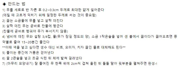 생생 정보마당 게국지 무딤섬 무정과 무꿀즙 레시피