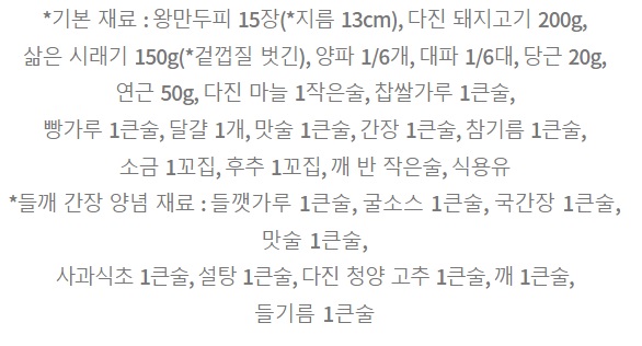 5. 들깨간장 양념재료들(들깻가루 1큰술, 굴소스 1큰술, 국간장 1큰술, 맛술 1큰술, 식초 1큰술, 설탕 1큰술, 다진 청양고추 1큰술, 깨1큰술, 들기름 1큰술)을 섞은 뒤 만두와 곁들인다.