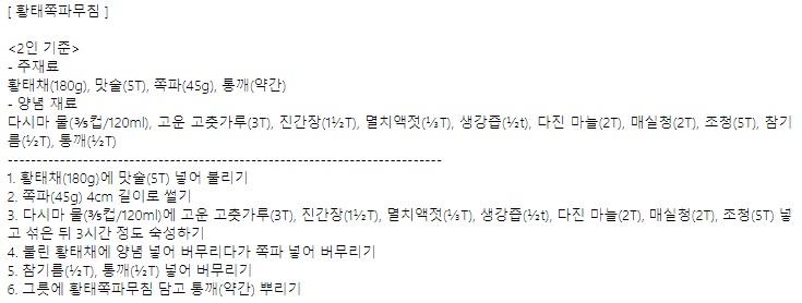 최고의 요리비결 고준영의 명태회무침과 황태쪽파무침 레시피