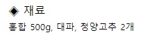 1. 삶아둔 홍합에 대파, 청양고추를 넣고 끓이면 완성