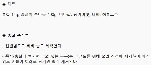 생생 정보마당 콩나물 홍합찜 홍합탕 홍합초 레시피 만드는 방법