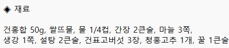 1. 건홍합 50g에 물 한 컵을 부어 헹궈준 후 쌀뜨물을 넣어 15분간 불려준다.