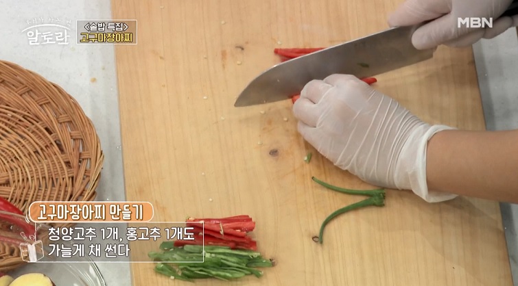 4. 청양홍고추, 꽈리고추는 채 썬다.