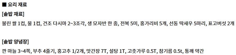 편스토랑 박수홍 & 아내 다예 해물 솥밥 솥밥 양념장 레시피